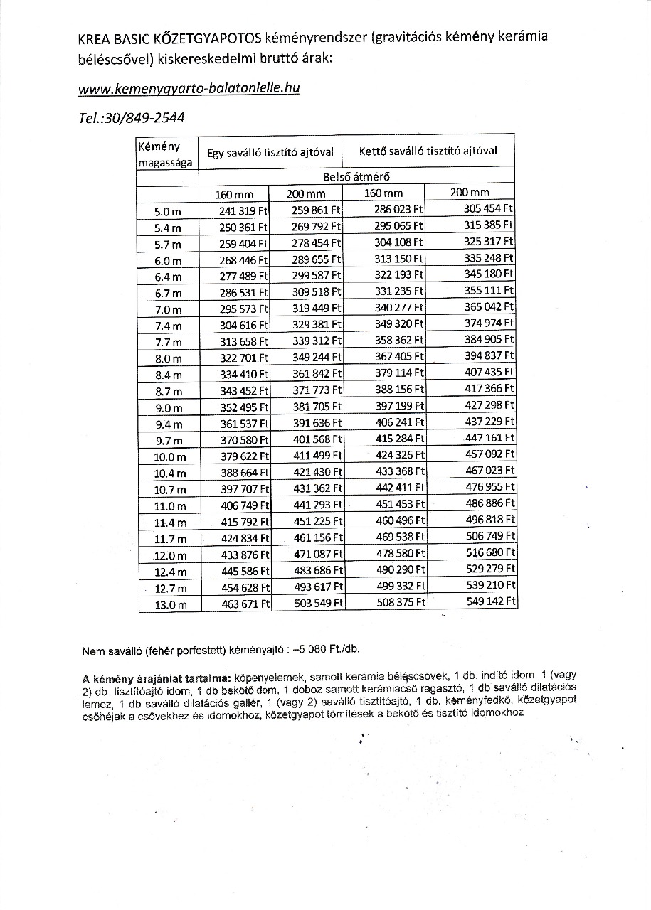 KREA BASIC KŐZETGYAPOTOS KÉMÉNYRENDSZER